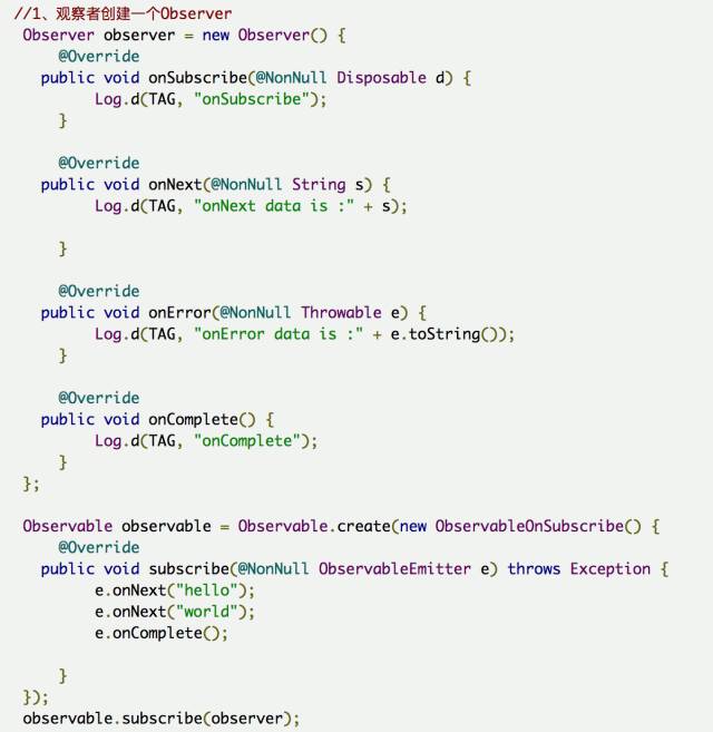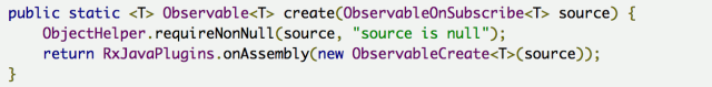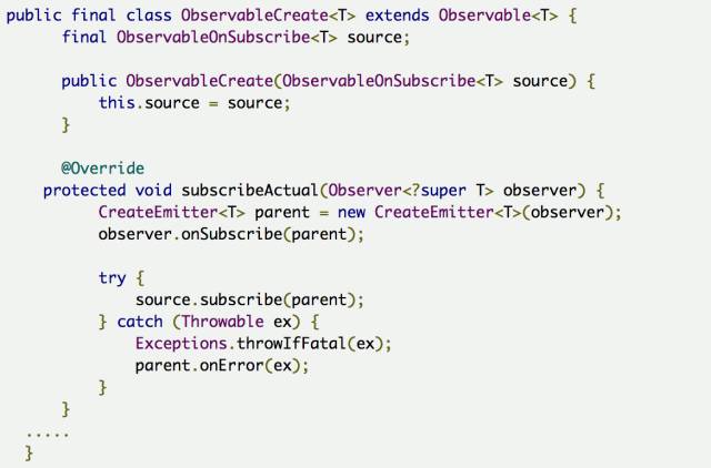 里面的三个方法使用过rx的应该非常眼熟了。看到这里,我们只是了解了传递参数的数据结构,了解到的信息还是比较少的。我们继续看下create内部做了什么操作呢?