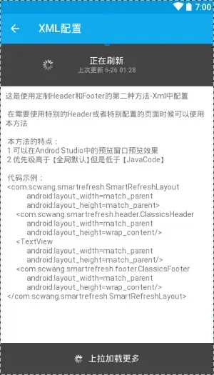 - SmartRefreshLayout: The core to realize,Bring ClassicsHeader and BezierRadarHeader.