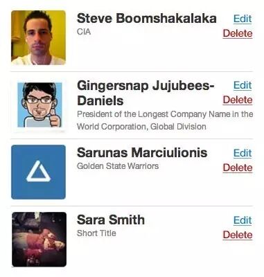 历史上,设计师曾经在使用静态工具时,倾向于只针对最佳场景做设计。你知道我指的什么:用户的名字永远都叫 Sara Smith 并且工整的放在一行;个人资料图片呢,看起来好像是杂志上剪下来的;而且她居然完整填满了表格;个人资料中的两列内容居然是等高的。