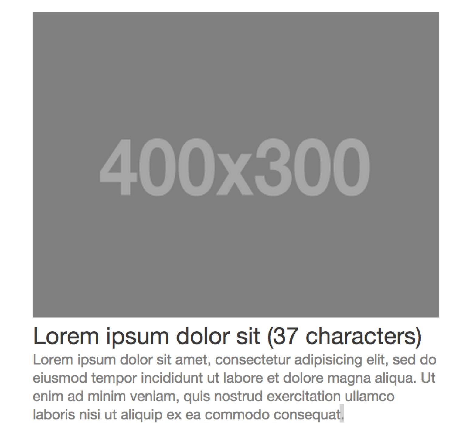 我们不能脱离开 pattern library 来讨论底层 UI pattern 中的内容结构。这就是为何我们看到的都是灰度显示的图片和有字数限制的文本占位符。不过这个信息对创意团队会有帮助,灰度图片和哑元文本 (常用于排版设计领域的拉丁文文本) 并非用户在网站上实际看到的。我们需要一个能用有代表性的真实内容来替换这些呆板的线框和占位符。以确保我们的 UI pattern 能贴合它要展示的内容。