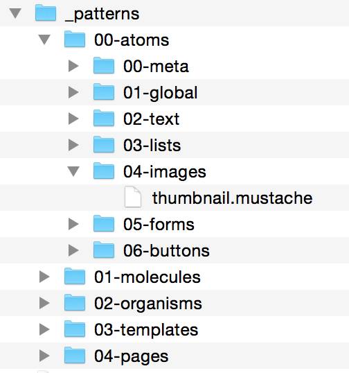 名字源于 ( {{}} ) 这种大括号的嵌套看起来像是卷卷的小胡子。里边的大于号 (>) 是 Mustache 告知 Pattern Lab 涵盖叫做「thumbnail」的原子pattern的方式。Pattern Lab将通过_patterns的文件夹搜索找到一个名为“thumbnail”的Atom。