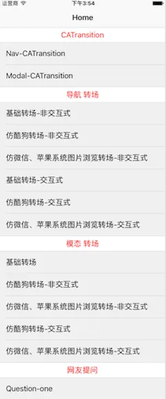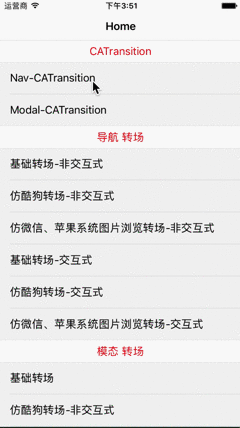(1)Nav导航转场:要改变转场动画,其实方法只有一个,非常容易理解:[self.navigationController.view.layer addAnimation:[self pushAnimation] forKey:nil],