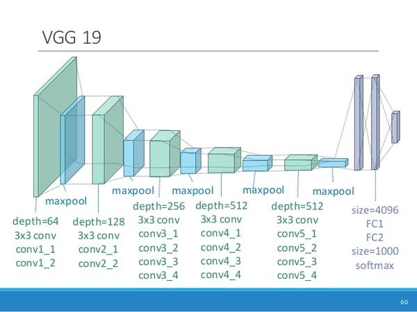 卷积神经网络当时最出名的一个物体识别网络之一叫做VGG19,结构如下: