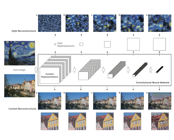 这篇文章中你不会看到数学公式,如果想要更加详细了解其中的数学的话可以阅读原论文。我想试着从头开始讲起,从Gatys et al., 2015a和 Gatys et al., 2015b中用到的一些技术的历史开始讲起,用最简单的方法说清楚基于神经网络的图像风格迁移的思路是什么,以及Gatys为什么能够想到使用神经网络来实现图像风格迁移。