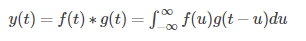它是通过两个函数 f(t) 和 g(t) 来生成第三个函数的一种数学算子。从负无穷到正无穷遍历全部 u 值,把 g(t-u) 的值乘以 f(u) 的值之后再进行累加,得到关于该累加操作的关于 t 的函数。从另一个角度看,卷积就是一种加权求和。