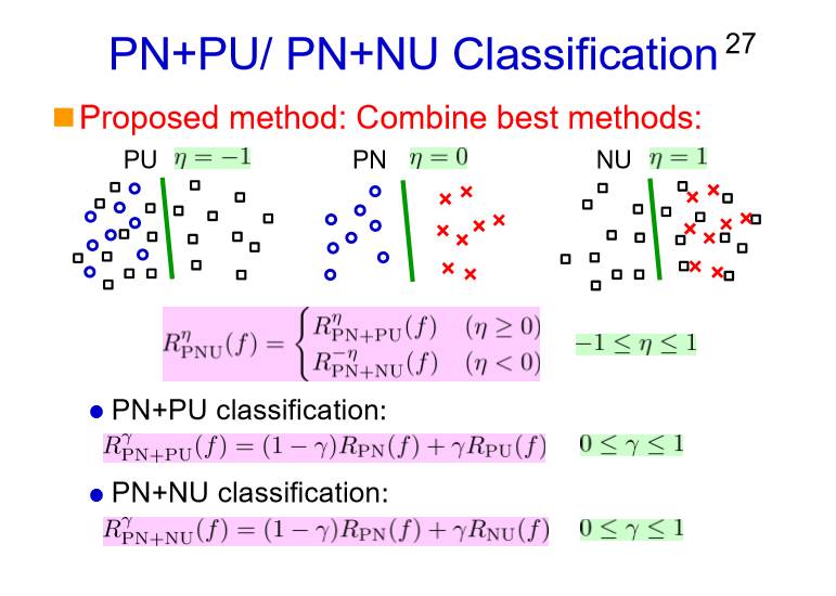 最简单就是PU和NU要把它结合起来,我们要把这两者整合起来。所以原理就是,第一步把PN和PU结合起来,第二步把PN和NU结合起来,这样的话我们总是能获得最优的方法,这是我们现在做的一个研究工作。
