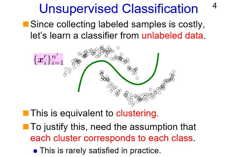 然而,想要获取大量的标注数据是非常耗时耗力的,我们希望也能够对无标注数据进行分类,这就是无监督分类的由来。