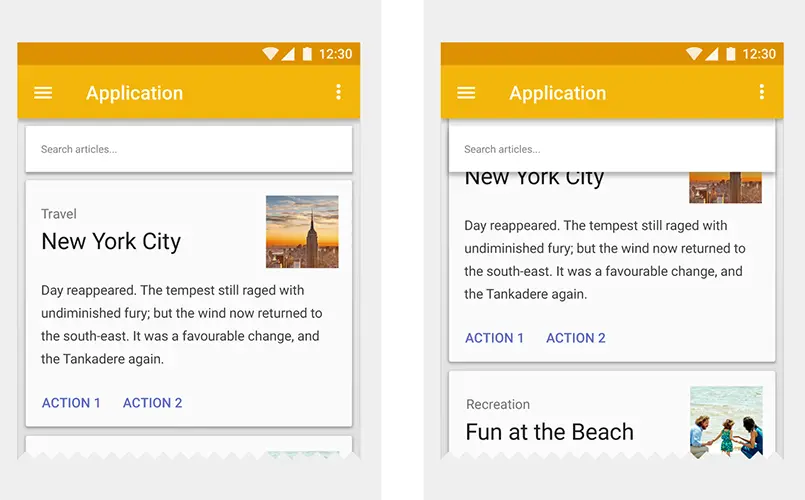 在布局层面上,通过设计应用的布局可以减少组件间相互冲突。举个例子,将浮动按钮(FAB)置于屏幕的一侧,当用户选择卡片(cards)的时候就不会和浮动按钮产生冲突。