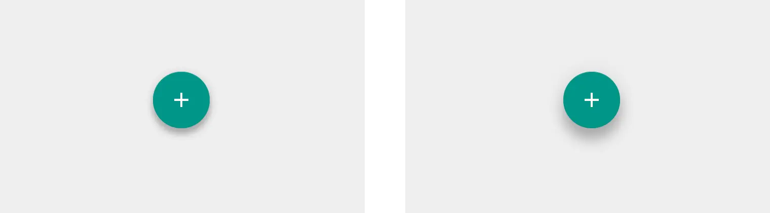为了引导用户理解material对象的深度和运动方向,投影提供了重要的视觉暗示。投影是唯一能够区分面与面(material对象)之间关系的视觉线索。一个material对象的高度决定了其投影的效果。