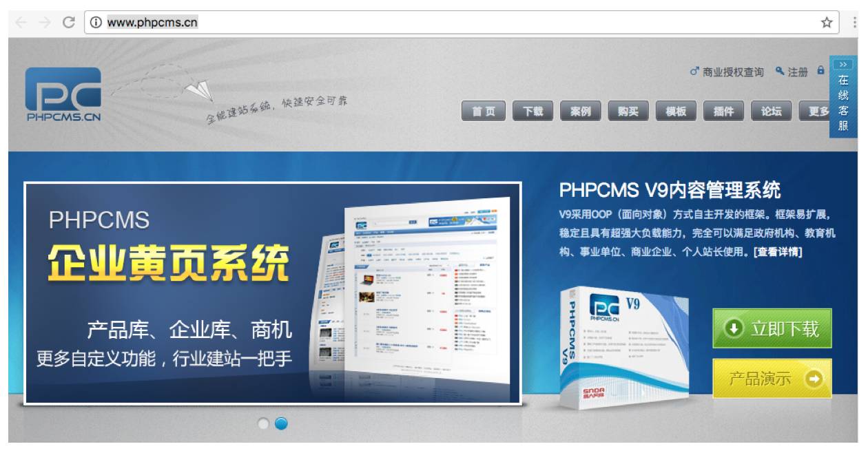 项目地址为:http://www.phpcms.cn/
