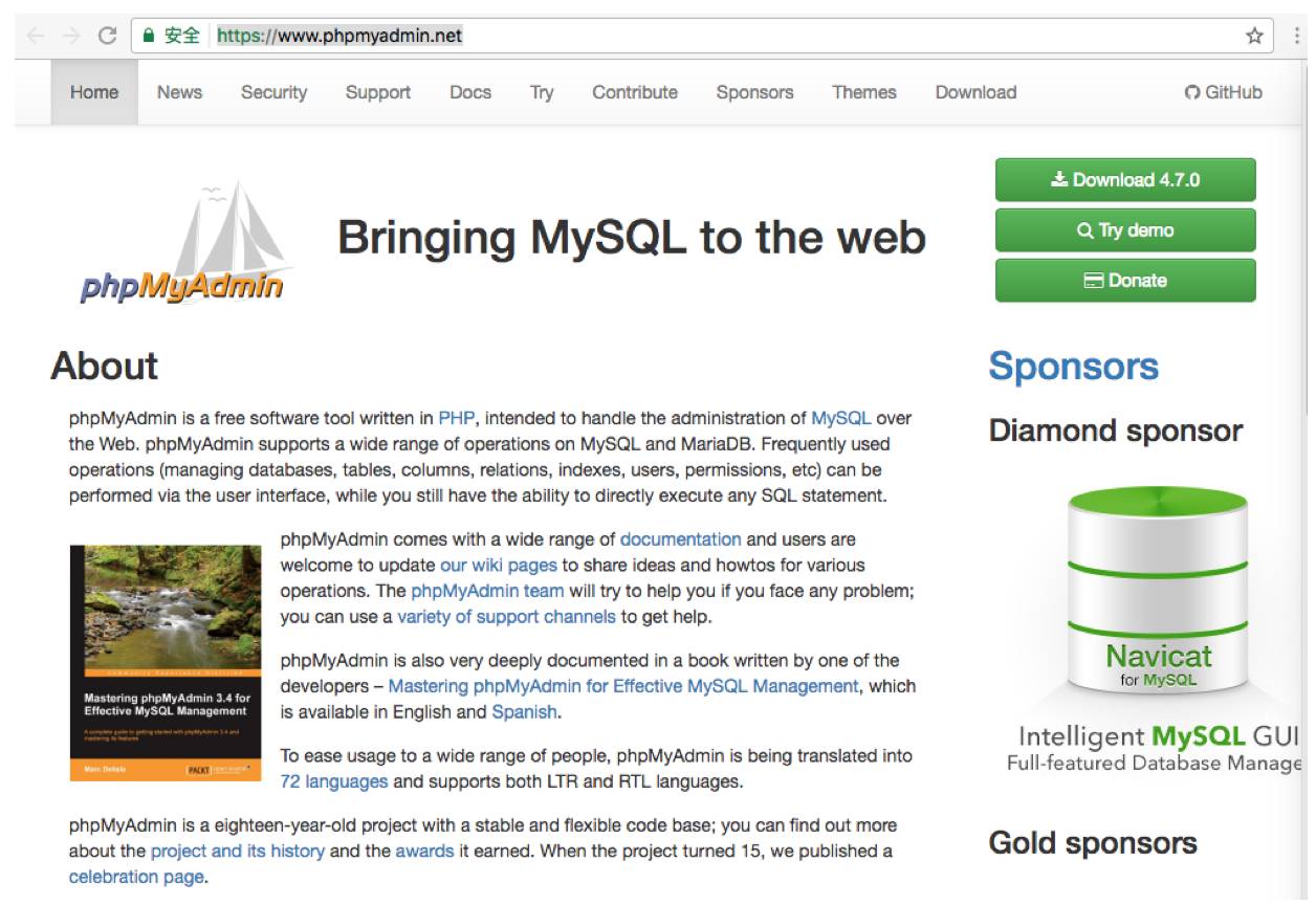 项目地址为:https://www.phpMyAdmin.net/