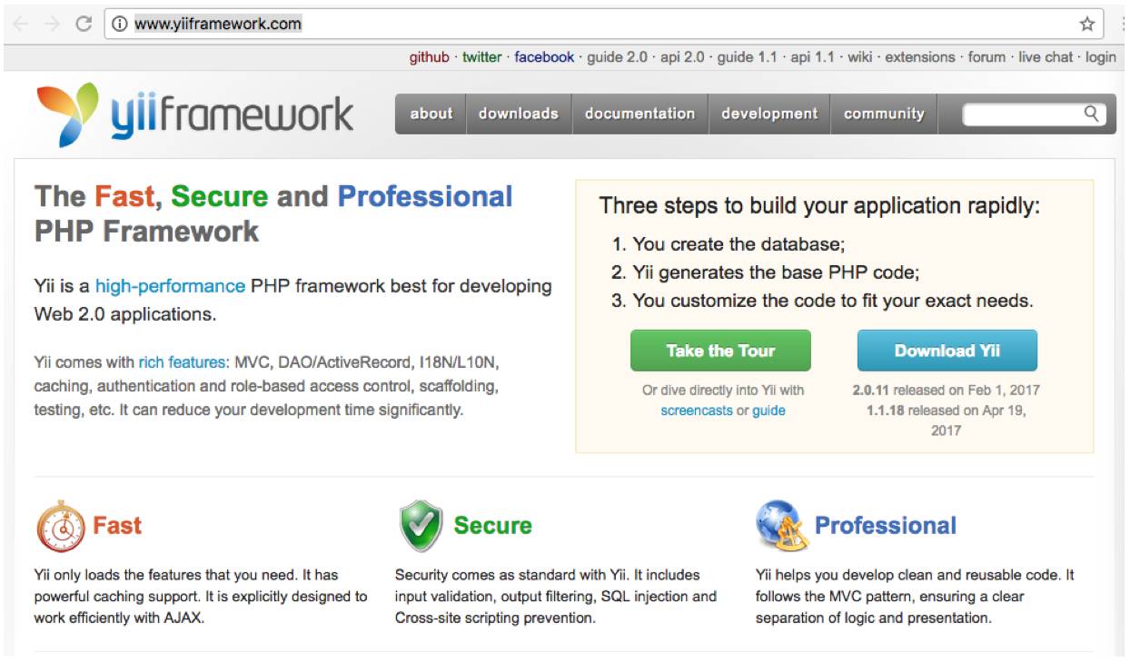 项目地址为:http://www.yiiframework.com/