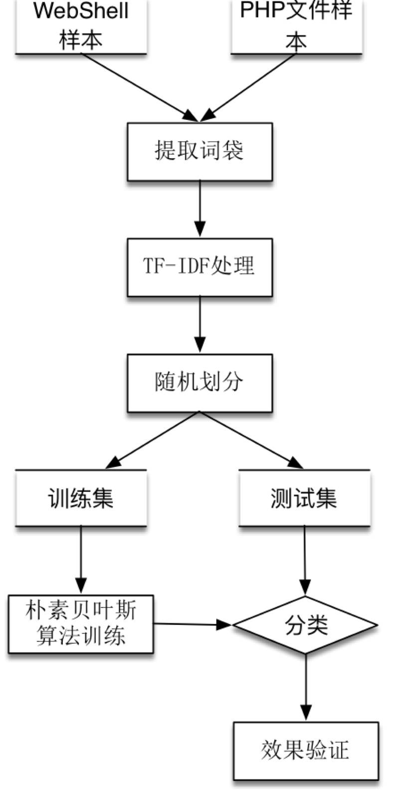 本章主要以常见的WebShell数据集为例子介绍基于WebShell文件特征的检测技术。 介绍WebShell检测使用的数据集以及对应的特征提取方法,介绍使用的模型以及对应的验证结果,包括朴素贝叶斯和深度学习的MLP、CNN。基于WebShell文件访问特征的检测方法不在本章范围内。
