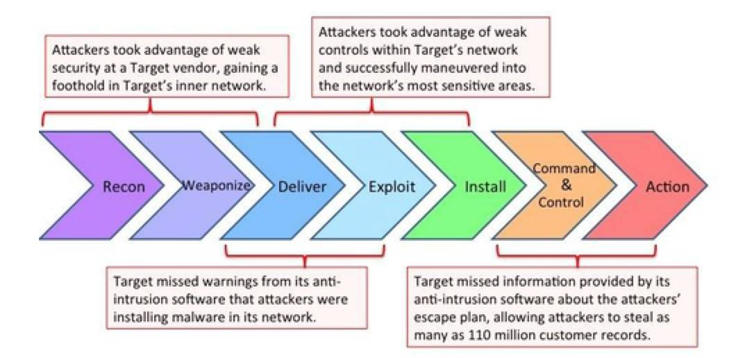 在攻击链模型中,整个攻击过程分为以下几个步骤: