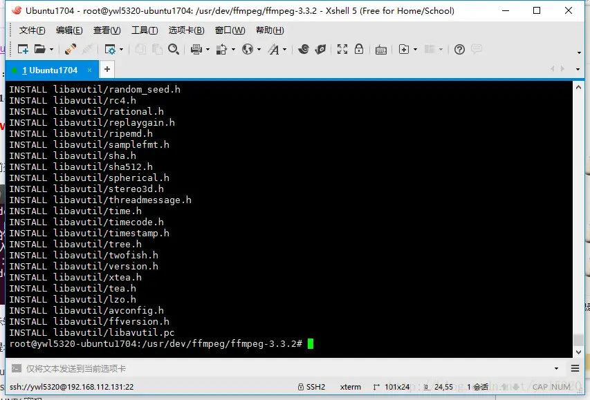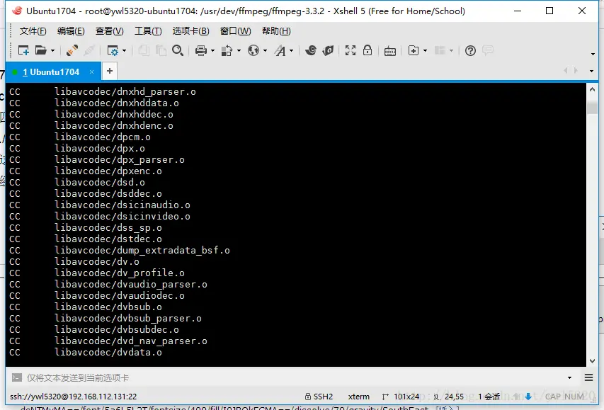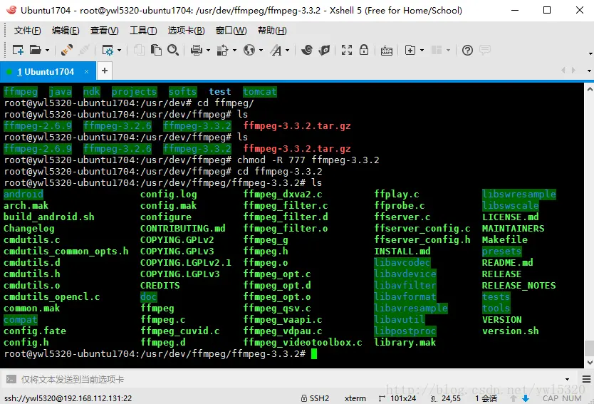 一:这里我用的是Windows+Vm+ubuntu来编译的ffmpeg,其中Windows上面安装vm,在vm中安装ubuntu以及xshell,xftp我就不介绍了,这里当成大家的基本功了(注:Ubuntu中需要安装ssh服务才能连接xshell,安装命令:sudo apt-get install openssh-server)。