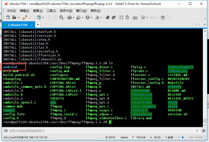 在ffmpeg3.3.2目录中生成了android目录
