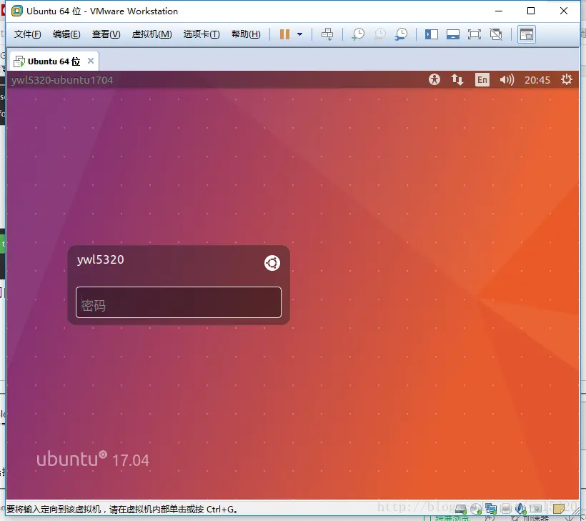 创建虚拟机安装ubuntu系统,然后启动我们的ubuntu系统(我的版本是17.04)