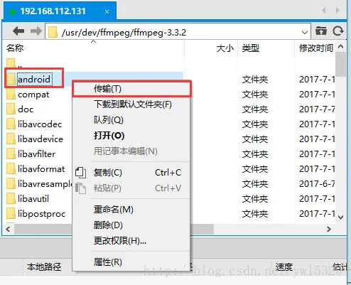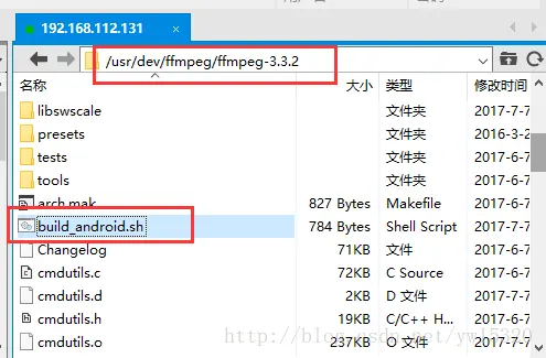 把编写好的脚本build_android.sh上传到ffmpeg3.3.2根目录下: