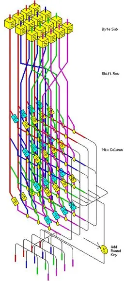 这里简要介绍一下AES算法。AES算法包含了多个轮,每一轮(除了最后一轮)中,都有4个步骤[4][5]: