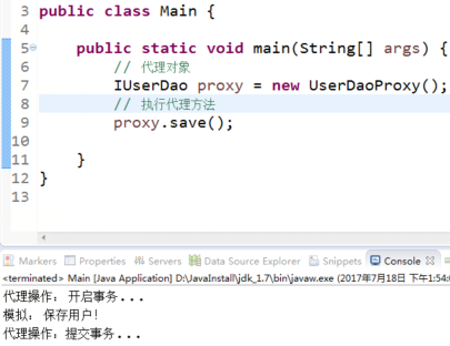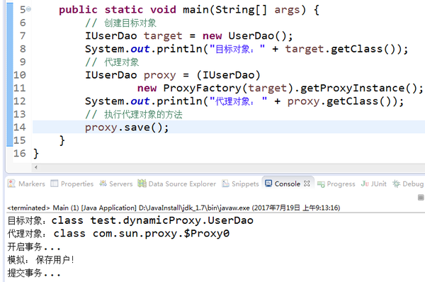 IUserDao proxy = (IUserDao)new ProxyFactory(target).getProxyInstance();