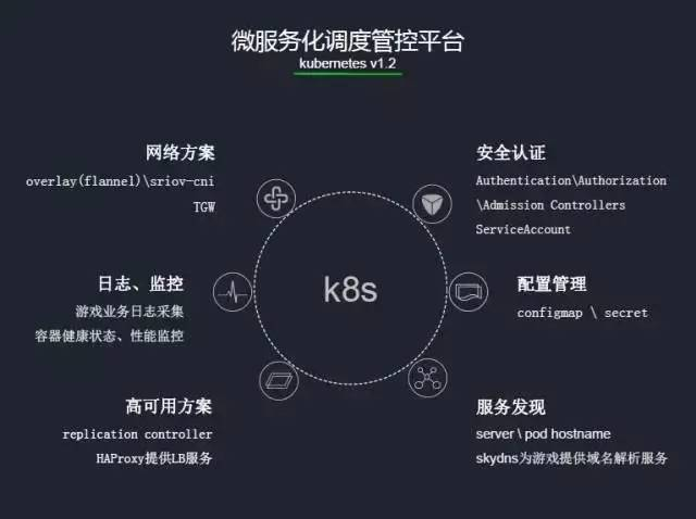 4、安全方面:kubernetes集群承载着整个游戏容器资源的调度、管理。不管是人为误操作,还是黑客入侵,造成的影响将是非常之大。所以安全是我们需要考虑的重点,结合kubernetes,我们目前做了以几方面,后面会有更加的安全策略提供