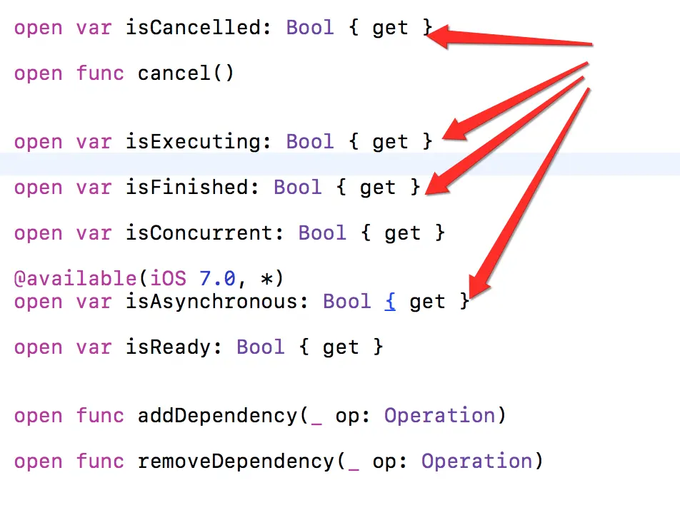 isExecuting: 必须的。是否执行中。,需要实现KVO通知机制。 -