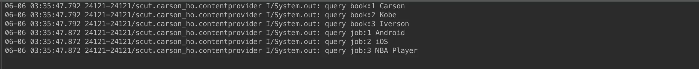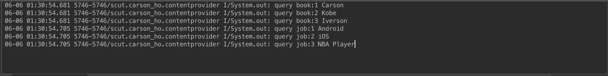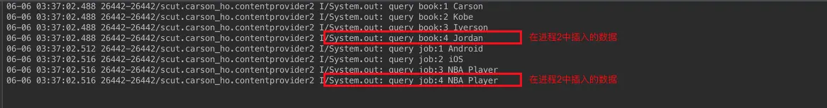在进程2中,我们先向ContentProvider中插入数据,再查询数据