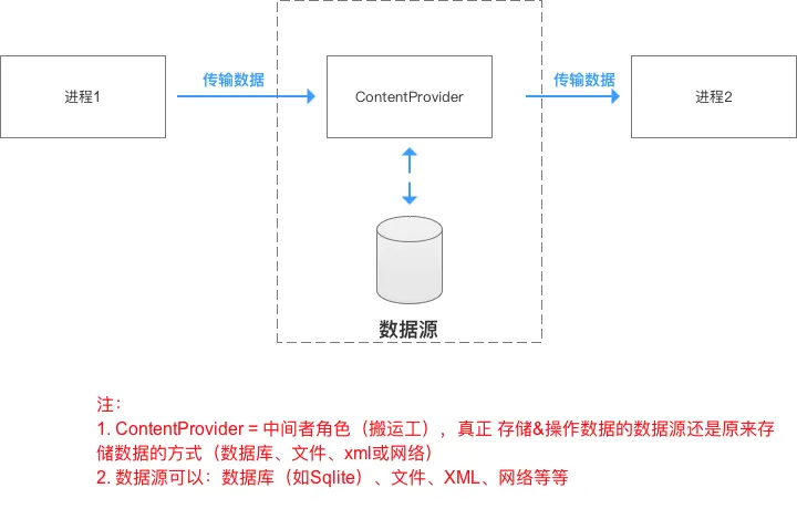 ContentProvider方式,其 解耦了 底层数据的存储方式,使得无论底层数据存储采用何种方式,外界对数据的访问方式都是统一的,这使得访问简单 & 高效如一开始数据存储方式 采用