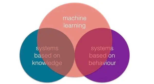 我们看到有两种不同的系统:在人工智能历史上很多系统都是基于知识的系统,有一种系统更多的是针对比较小群体的行为,比如说使用基于规则的专家系统来检查信用的,且已经用了很多年了;还有一种系统,在进行机器学习之前做研究行为,我们见到的更多是经典的反应性机器学习。