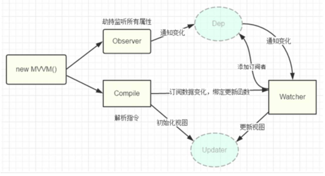 在数据绑定初始化的时候,我们需要通过new Observer() 来监听数据模型变化,通过new Compile() 来解析编译模板指令,并利用Watcher搭起Observer和Compile之间的通信桥梁。