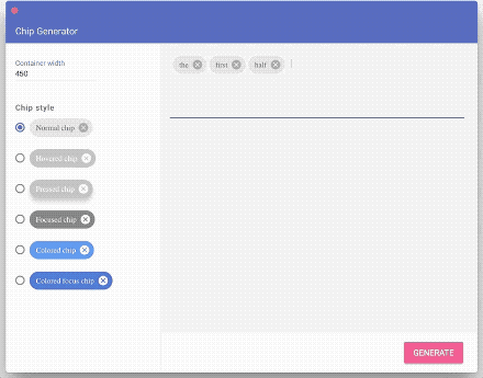 Material Design 中关于 Chips 的描述[Chips - Components - Material design guidelines] (https://material.io/guidelines/components/chips.html#chips-usage)