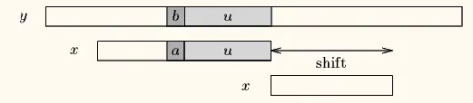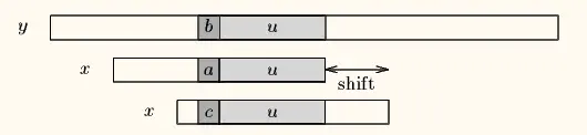 当 i 处于 f 和 g 之间并且suff[m - 1 - (f - i)] < i - g,根据suff[f],我们可以推断出suff[i] = suff[m - 1 - (f - i)],图中椭圆的长度即为suff[m - 1 - (f - i)]。