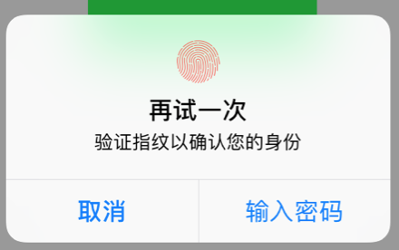 // 指纹认证错误后的第二个按钮文字(不写默认为“输入密码”)