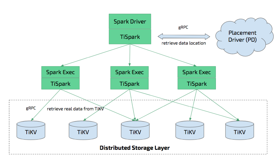 TiSpark 是将 Spark SQL 直接运行在 TiDB 存储引擎 TiKV 上的 OLAP 解决方案。TiSpark 架构图如下: