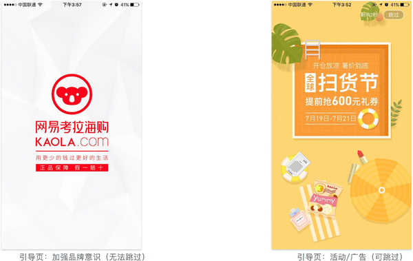 说到启动页,大家肯定首先想到的是广告位、节日营销或加强品牌意识。可以点击,并且一般都可以选择跳过。实现方式可以为静态页,也可以是动态图。