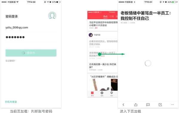 2.进入下页加载:点击按钮,跳转至下一页面并加载内容。绝大部分app采用这种加载方式,极大的增强了流畅的感觉。