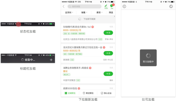 2.导航栏加载:将导航栏标题临时变成加载信息文字提示。