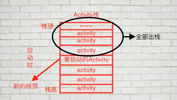 当活动的启动模式为singleTask时,启动该Activity会现在栈中检查是否已存在,若存在则直接将该活动之上的Activity全部出栈。