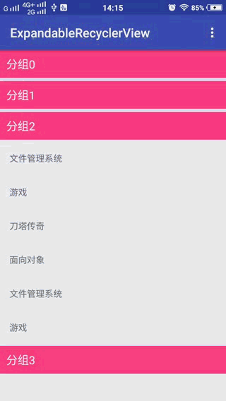 完成以上两步之后,基本大工告成,由于ExpandableRecyclerView的数据是要分组的,所以提供了RecyclerViewData来封装