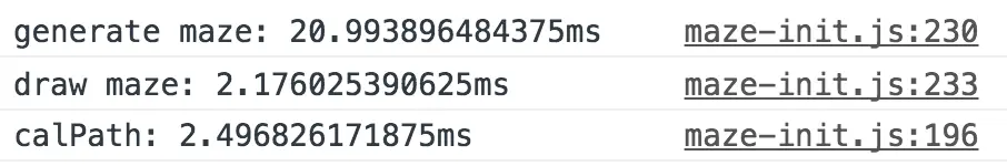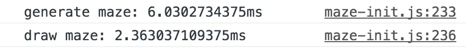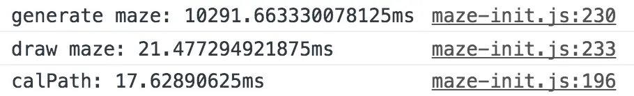 最后再比较一下WASM和JS生成迷宫的时间。如下代码所示,运行50次:
