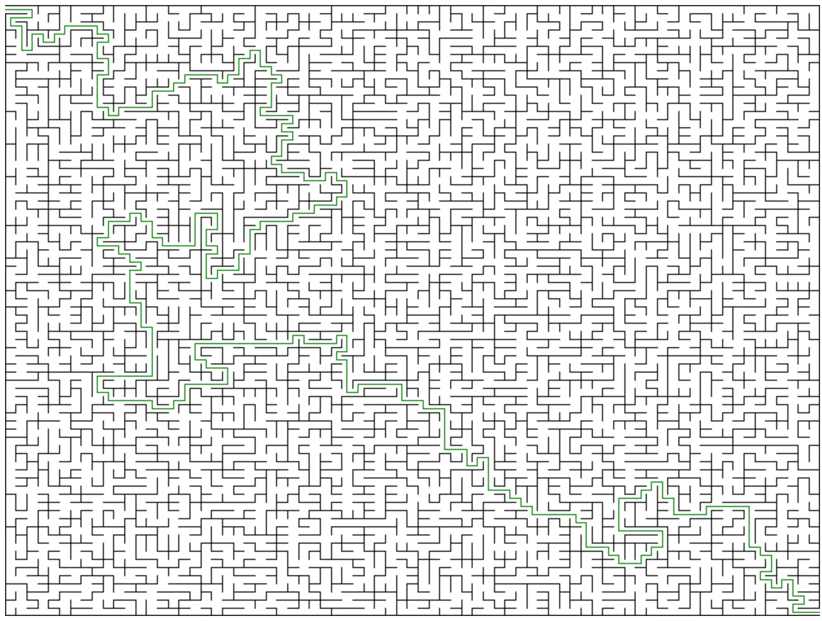 本篇将尝使用canvas + wasm画一个迷宫,生成算法主要用到连通集算法,使用wasm主要是为了提升运行效率。然后再用一个最短路径算法找到迷宫的出路,最后的效果如下: