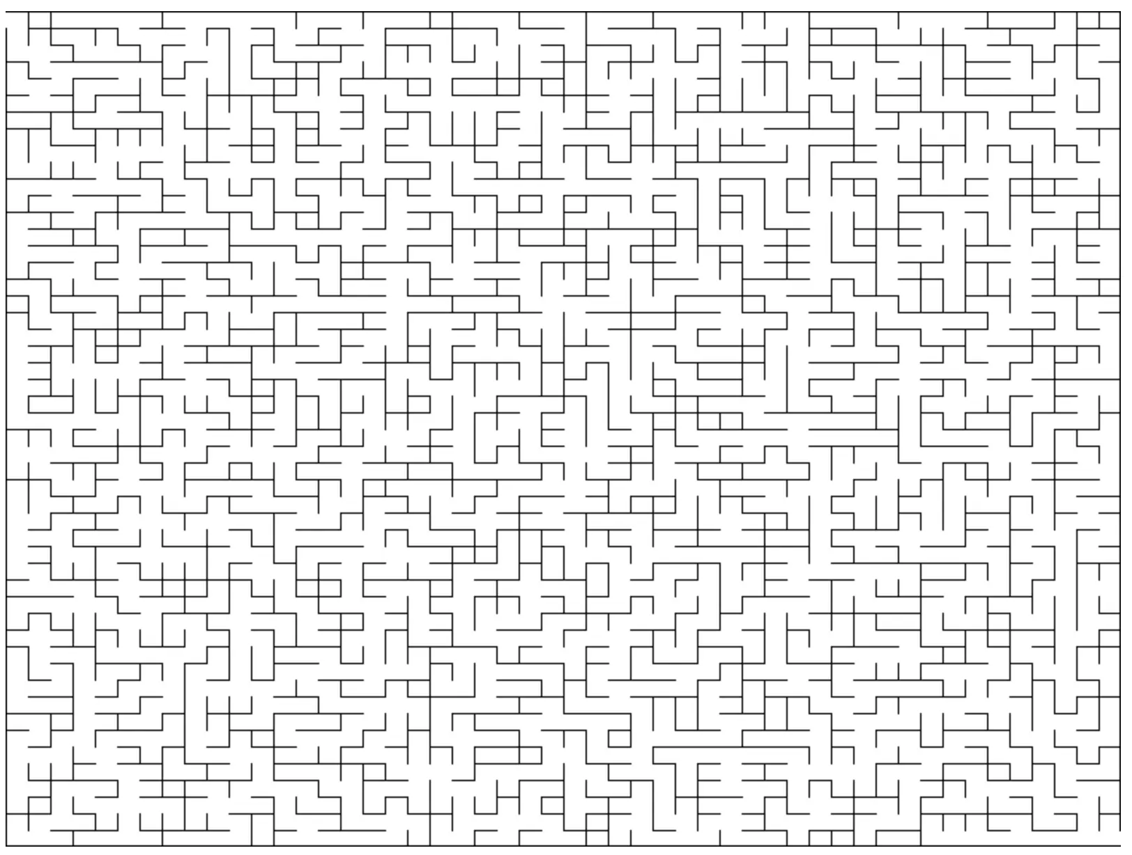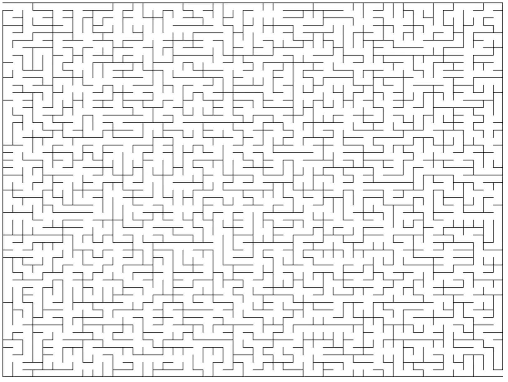 (2)随机选取相邻的两个格子,可以是左右相邻或者是上下相邻,判断这两个格子是不是处于同一个连通集,即能否从其中一个格子走到另外一个格子,如果不能,就拆掉它们中间的墙,让它们相连,处于同一个连通集。