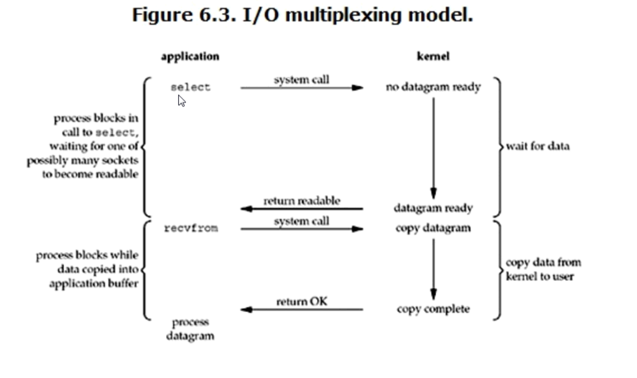 在这个模型中,等待数据与copy数据的过程都是阻塞的,所以也叫全程阻塞,与阻塞IO模型相比,这个模型优势在于处理多个连接