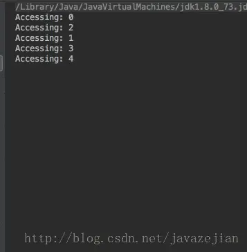 上述代码中,在创建Semaphore时初始化5个许可,这也就意味着同一个时间点允许5个线程进行共享资源访问,使用acquire()方法为每个线程获取许可,并进行休眠1秒,如果5个许可已被分配完,新到来的线程将进入等待状态。如果线程顺利完成操作将通过release()方法释放许可,我们执行代码,可以发现每隔1秒几乎同一时间出现5条线程访,如下图