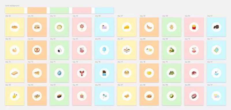 例如,在食品系列中,我定义了5种背景颜色以重复使用。它不仅保证了一致性,还帮助我限制住当天的主题 - 一些项目与背景颜色匹配良好,而其他项目则没有。