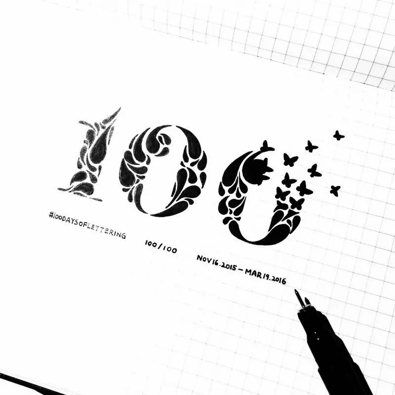 我过去的项目包括100天的涂鸦 , 100天的字体和100天的水彩 。