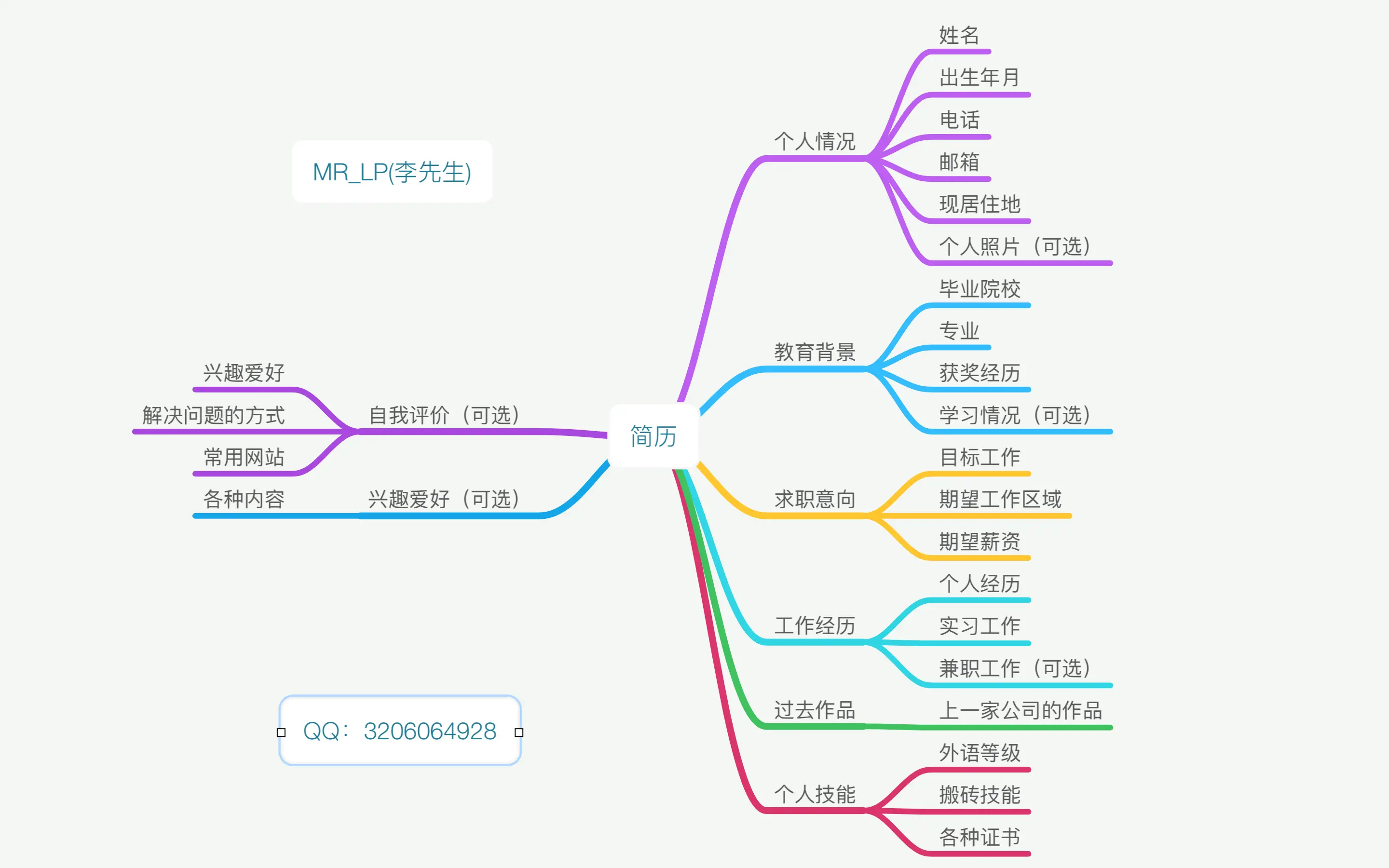 我把我认为简历中最重要的几个东西,分别通过思维导图的方式来呈现给大家。