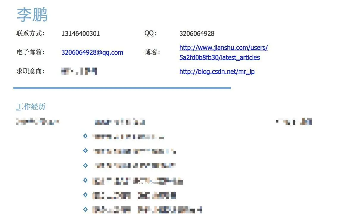 最后放张博主以前的简历截图,抛砖引玉一下。
