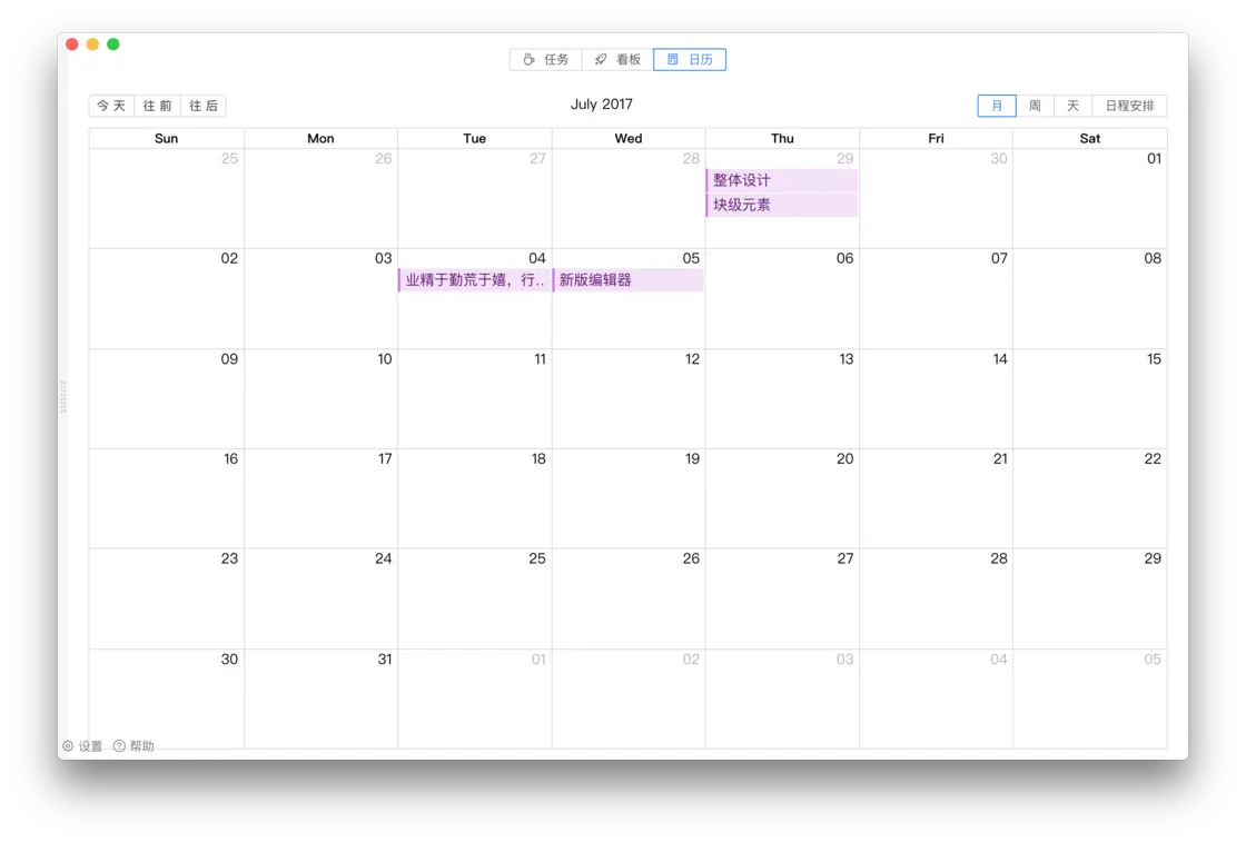 在任务管理中,日历是必不可少的,这是根据时间维度来看任务的基本模式,目前「氢」的日历支持很简单,只有查看的模式,不过基本满足需求。