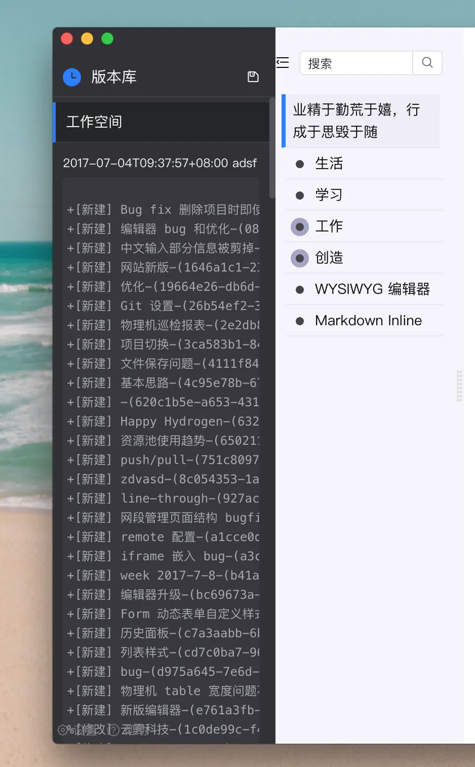 - 第一款用 Git 作为第一存储的笔记工具。